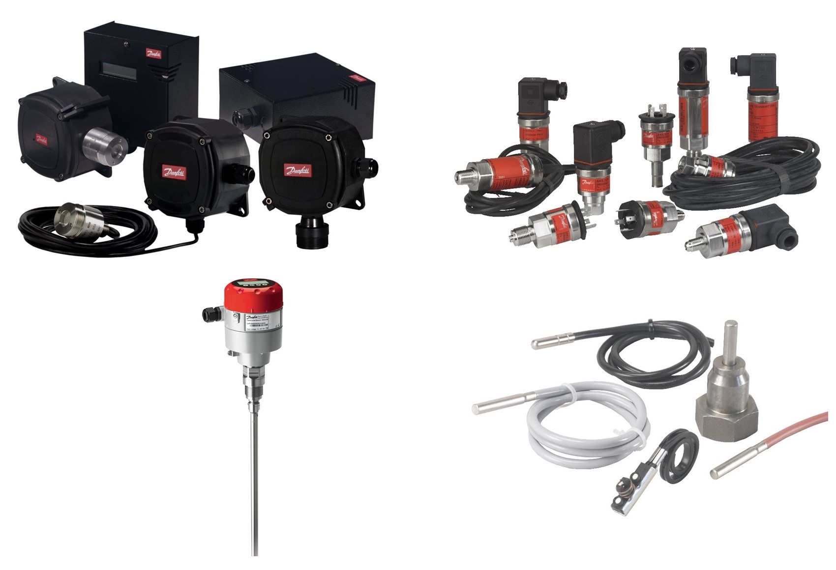Temperature sensors, pressure transmitters, liquid level control transmitters and gas detection sensors for electronic control ofrefrigeration applications